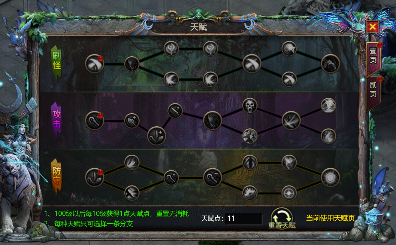 (4) 第二套天赋建议选择攻击或防守来提升pk能力,这样一套天赋打怪,一套天赋PK.