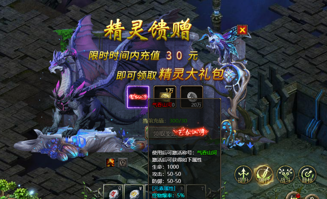 •累计充值30元:气吞山河称号、大量经验、20w银币